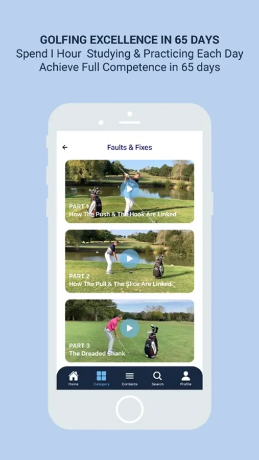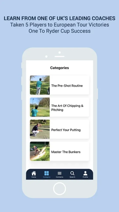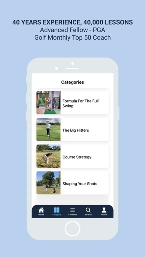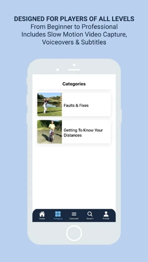 Designed for Players of all levels and covering every aspect of the game, the App will give you a ‘Pro’ in your Pocket for on-going learning, it will be a ‘Go To’ Guide & Troubleshooter for when your game goes awry and it will last your golfing lifetime.