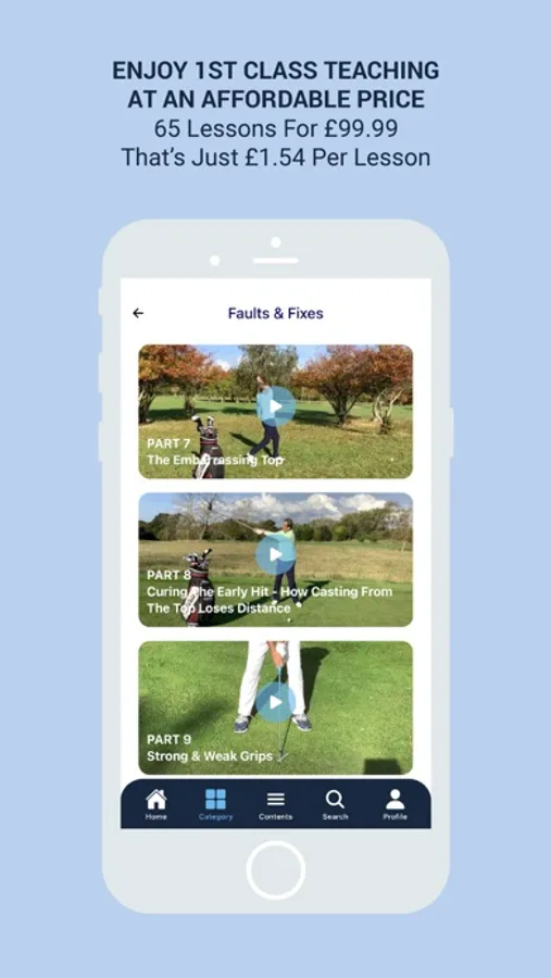 Paul Foston - My Golf Masterclass App has 65 Instructional Videos in easy to navigate categories that are all accessible for a one off payment of £99.99.