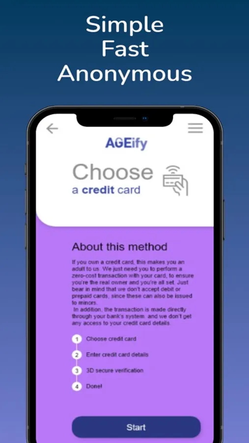 AGEify uses reliable affiliate organizations that have already verified the date of birth of their customers (banks, telecom operators, etc.). Your visitor just uses a short PIN or his/her fingertip to gain access.