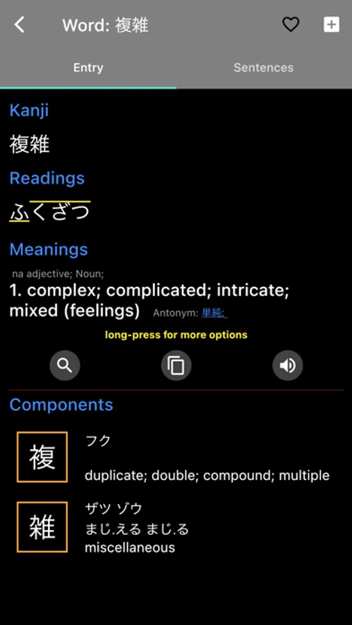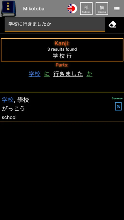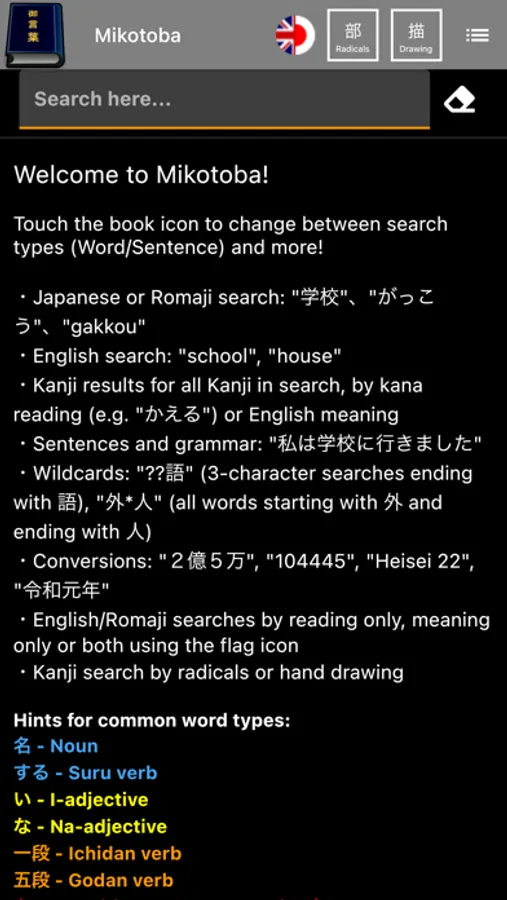 - Real-time search in Japanese (Kanji/Kana/Romaji) or English - search single words or whole sentences!