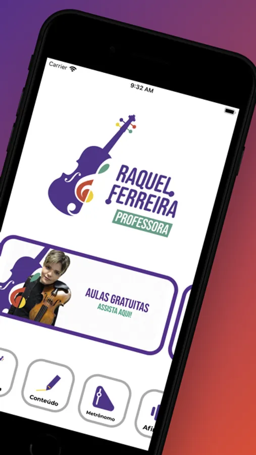 Este app é um espaço de aprendizado no qual a professora Raquel Ferreira avisa compartilhar suas aulas e disponibilizar ferramentas para o estudo do violino.