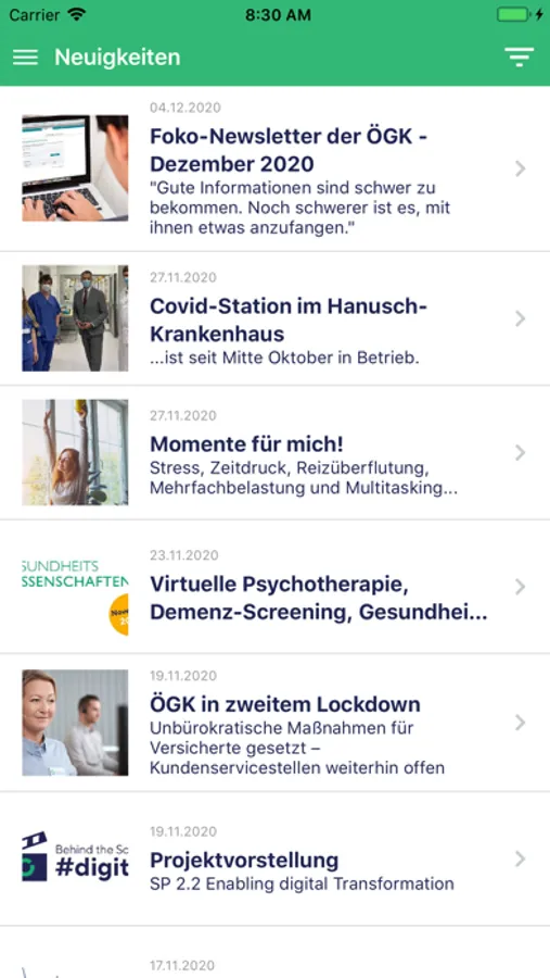 Aktuelle News, Ansprechpartnersuche und Nützliches für die tägliche Arbeit - die Inside-App der Österreichischen Gesundheitskasse hält Sie immer auf dem Laufenden:
