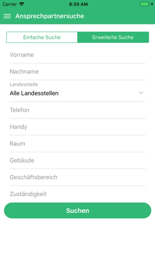 + Ansprechpartnersuche: Finden Sie Mitarbeiterinnen und Mitarbeiter über die App und starten Sie direkt einen Anruf, eine SMS oder eine E-Mail