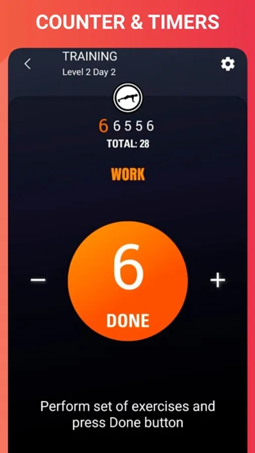 The 100 Push-ups application includes the following functionality: