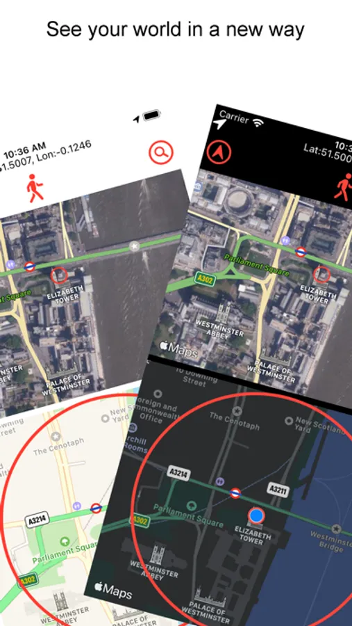 See the world in a new way! Explore places in a new way - see both satellite and standard map views of any location together.