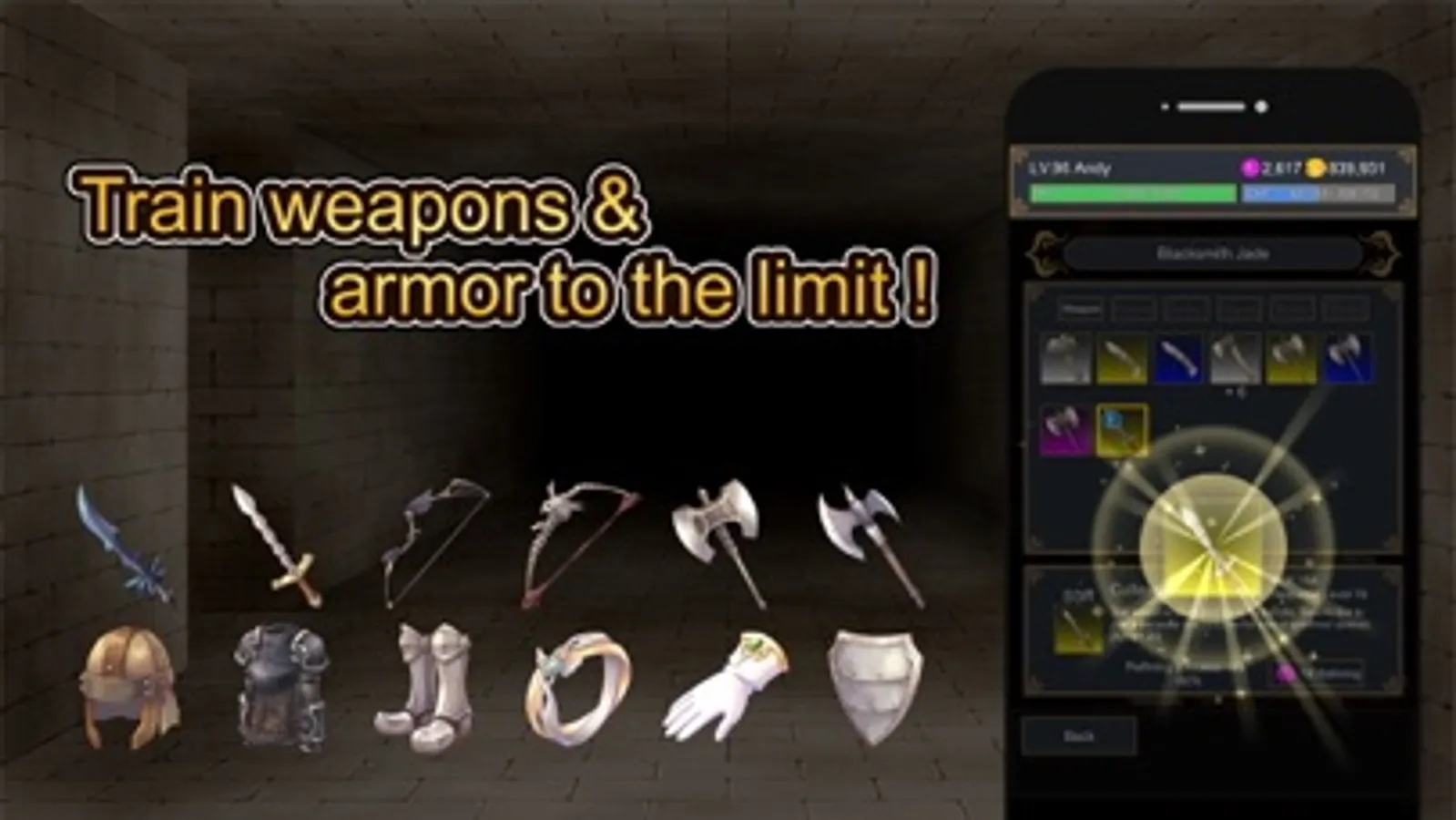 There are three categories of weapons: swords, axes, and bows, and they have advantages and disadvantages, such as high attack power but no shields.