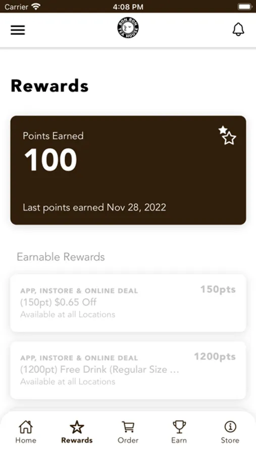 Bon Bon Tea House Rewards App - Earn and track your rewards at participating stores