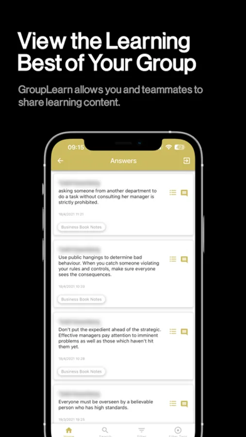 GroupLearn supports sharing of learned insights with your group or team. Document something you think everyone else needs to hear - about your work, your education, or your life. View the learnings of your group - and gain wisdom. Share your thoughts on what others have documented - to expand others' thinking and approaches.