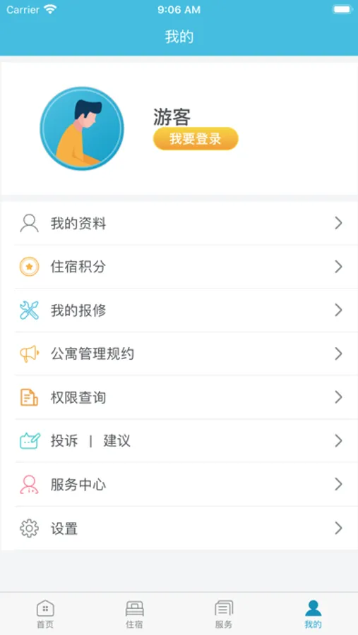 投诉建议:可对公寓管理、环境等方面提出建议,反馈服务人员服务状况。