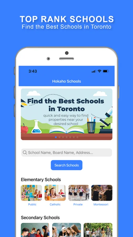 EASY TO USE - Hokaho School is the EASIEST App for people to find a HOME within close proximity to their desired SCHOOL; focusing in the Toronto and its surrounding area.