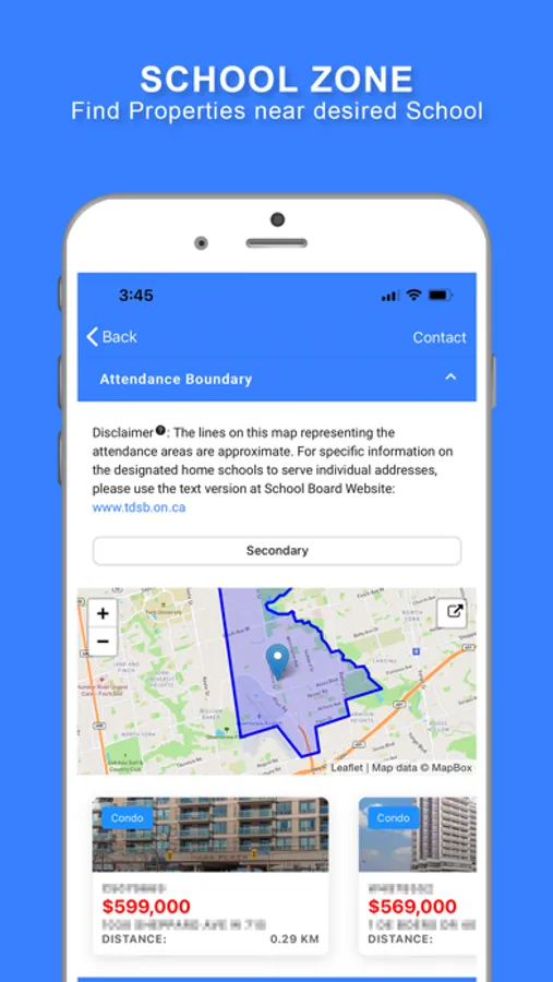 Simply “Click” into your desired School in our app and immediately see properties currently FOR SALE