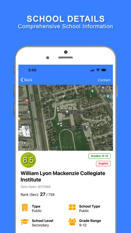 INTUITIVE MAP SEARCH – QUICK and EASY map search feature display the School Locations directly on the map. Easily navigate through the dynamic map to find the desired School and just click to expand your view on the School detail information. It’s that simple!