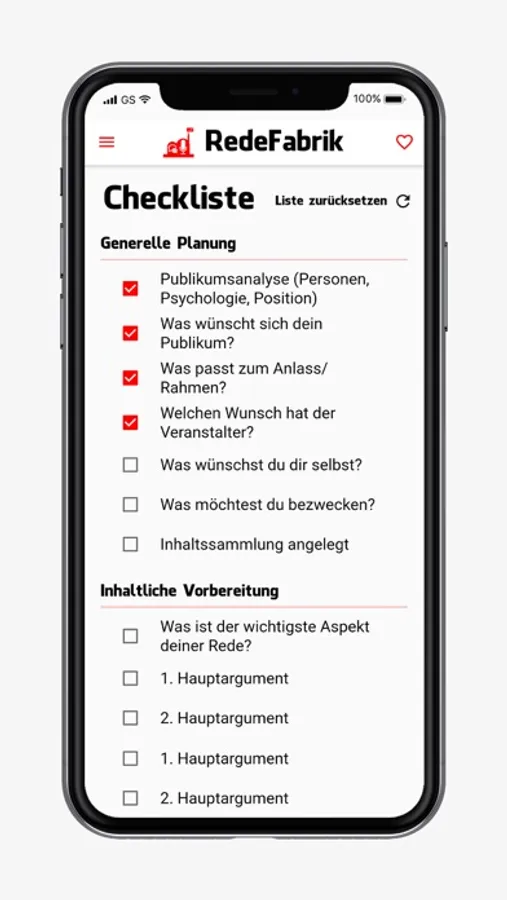 Und endlich hast du mit der RedeFabrik App alle Tools auf einen Blick: