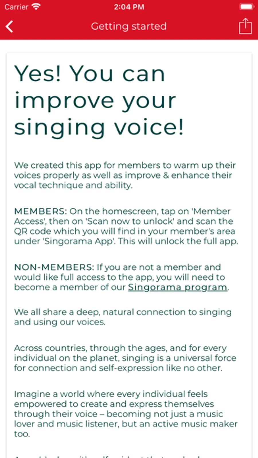 If you are not a member and would like full access to the app, you will need to become a member of our Singorama program.