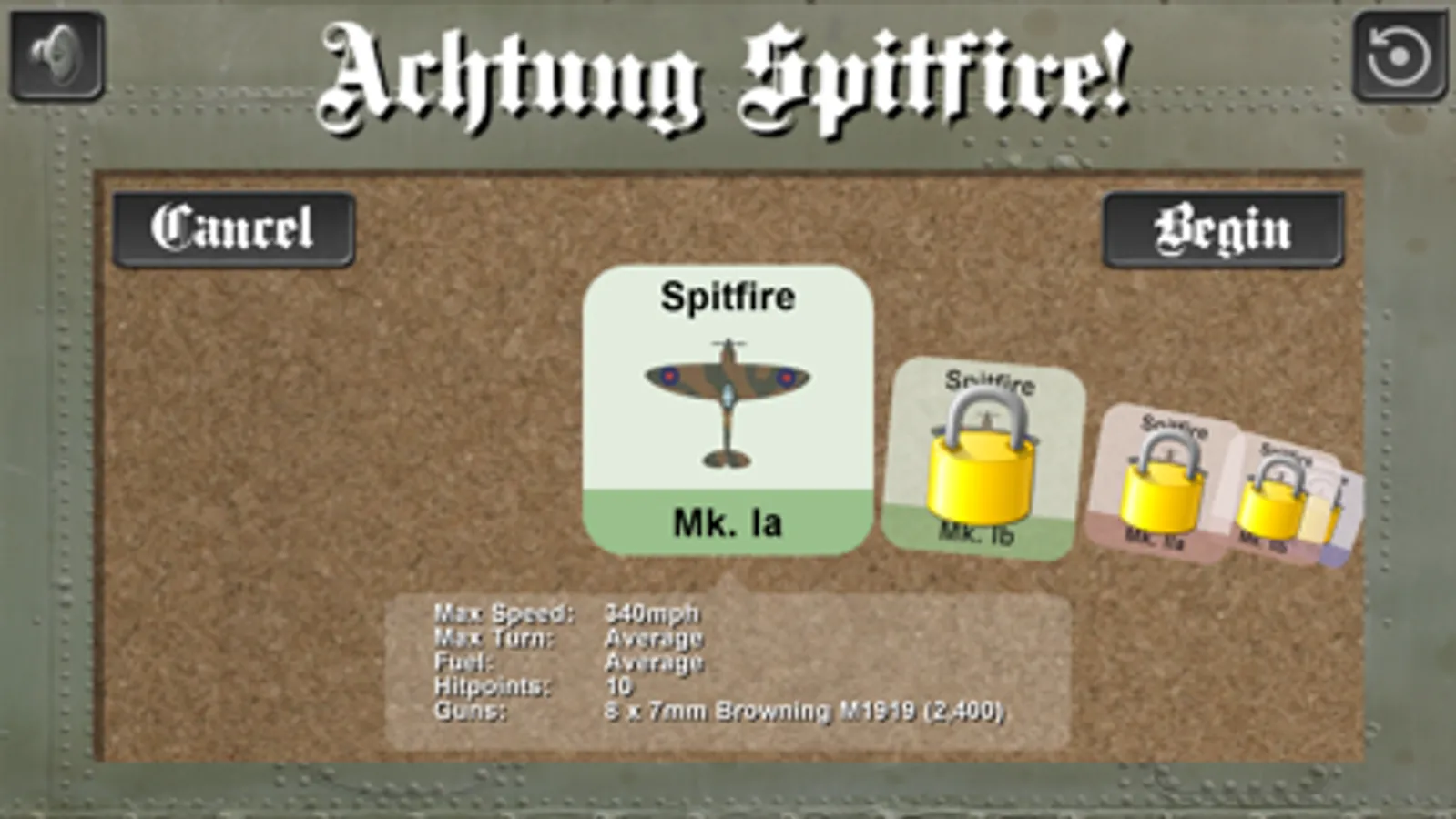 As you successfully complete missions you'll be able to choose increasingly more capable models of Spitfires.