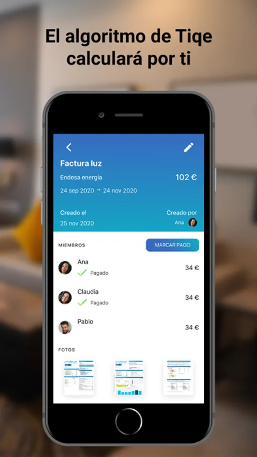 Tiqe will calculate for you. Enter the amount of the bill and select the days of stay to automatically calculate the debts of each member.