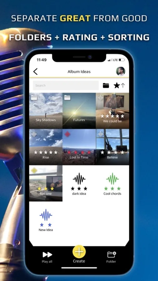 Separate your great ideas from the good ones with folders, ratings and sorting.