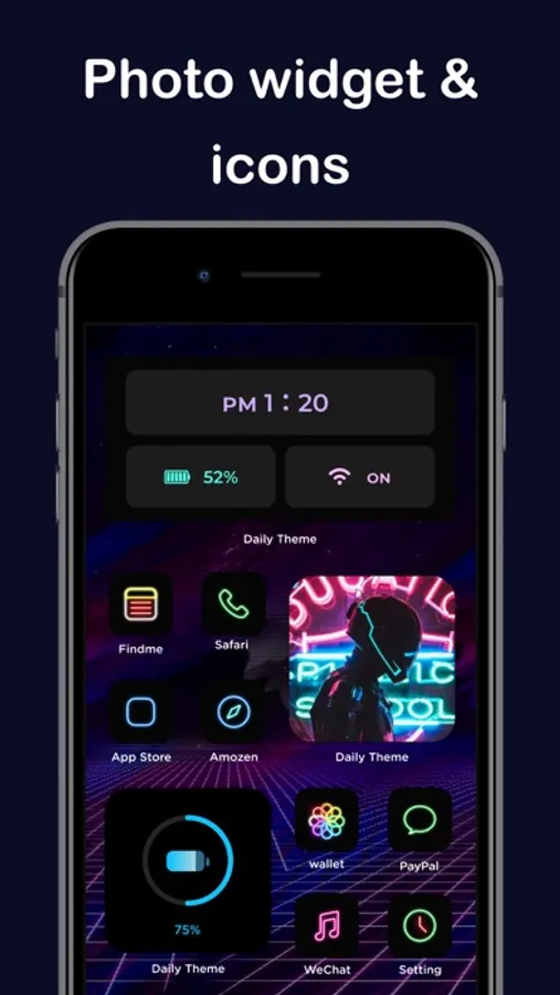 Daily Theme provide all popular icon themes for easy screen decorating, including Christmas app themer, neon app icons, minimalist icon packs, pink & glitter themes for girls and many aesthetic kits.
