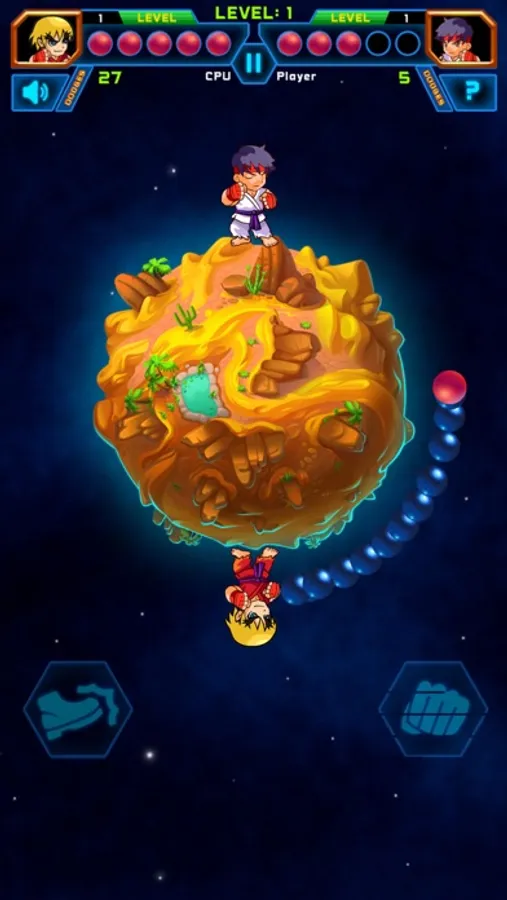 Train to be the greatest dodge ball ninja. Two mighty ninjas are training in a game of ninja dodge ball! Hit the ball back and forth or jump over it to confuse your opponent! Hit the ball as many times as you can while not getting hit by the ball. Each hit the ball gets faster and faster! Watch as the world spins after each round trading places with the other ninja.