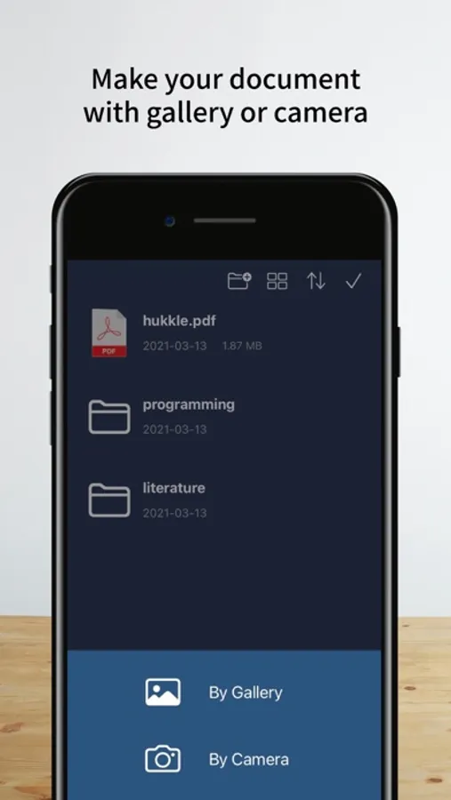 Use the camera to take a picture and create a PDF document file.