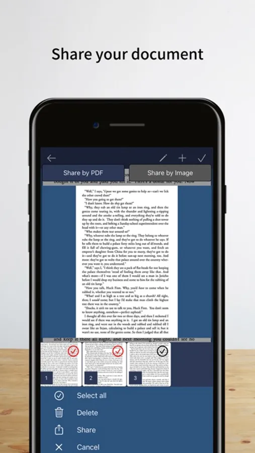 Created documents can be shared as images or Adobe PDF.