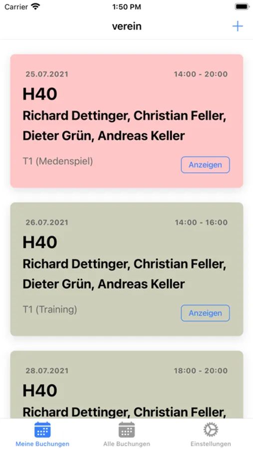 Buchen Sie sich Ihren Platz im Verein, fügen Sie (sofern freigeschaltet) andere Spieler hinzu. Behalten Sie den Überblick über kommende Medenspiele, Traingsereignisse und andere Belegungen.