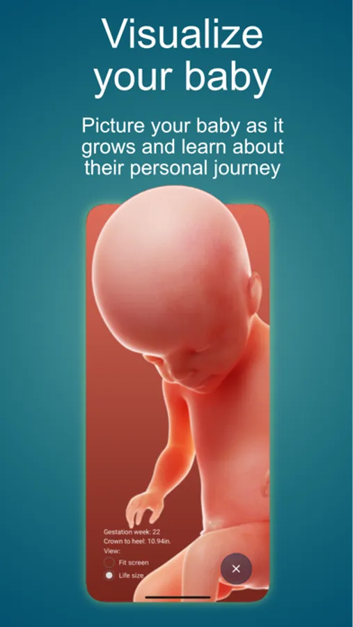 • Baby’s Growth: Keep track of how far along you are in your pregnancy and how much time you have left. Enjoy a life-size and scaled view of your baby.