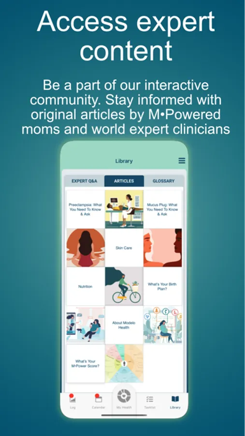 • Resource Library & Glossary: Loaded with expert articles, Modelo Health provides exclusive answers to the most important pregnancy questions and critical pregnancy-related topics.