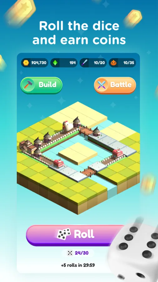 Welcome to Dice City, the newest free to play game where you can build your city, battle your friends and roll, roll, roll to hop around your city!