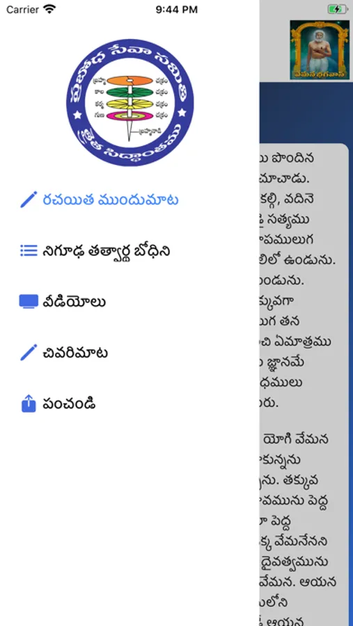 The last word in the menu item talks about the importance of the divine knowledge. The great knowledge provided by Vemana Bhagavan for the mankind.