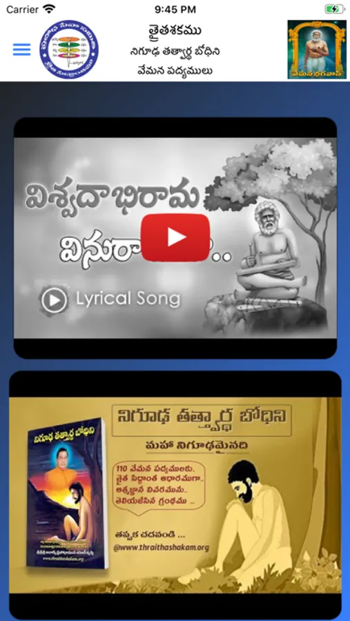 The videos section has four videos which do play the video songs to glorify about the greatness of Vemana Bhagavan. The videos songs are