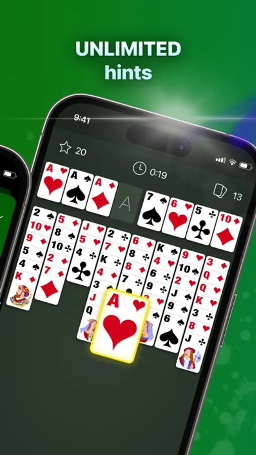 If you haven’t played before classic solitare such as Klondike, TriPeaks or Spider (also known as Patience games) – don’t worry. The game is extremely easy to play as our hint feature shows you all possible moves and you can learn the rules in the matter of few games.