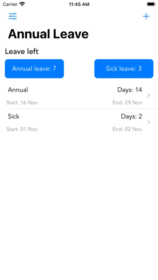 Annual Leave Days Screenshots