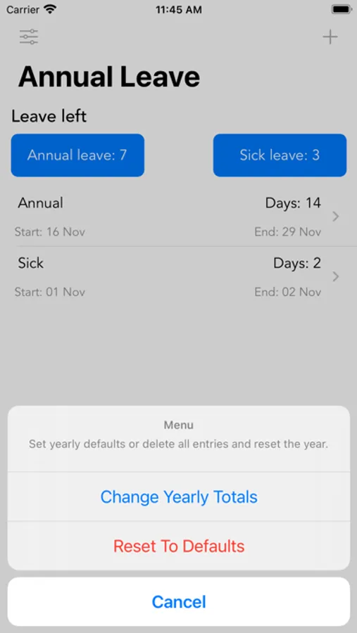 The application helps you to keep track of your annual leave days used at work and automatically calculates the remaining annual and sick leave days for the year.