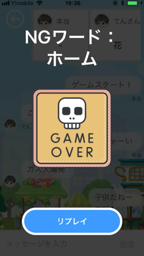 NGワードゲームをチャット(オンライン)で楽しむことができます。