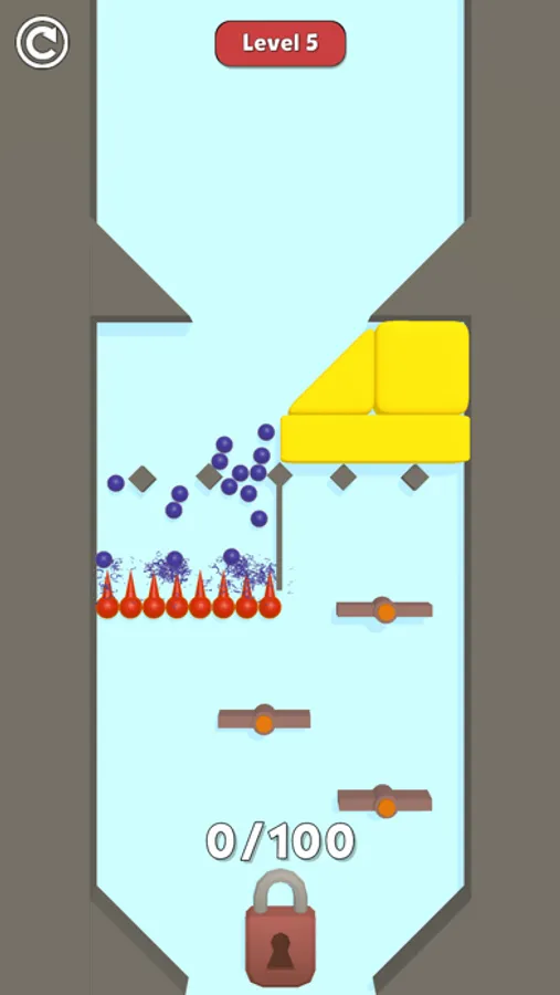 Tap and destroy blocks to get the balls to the pot. Make sure the balls do not touch the obstacles.