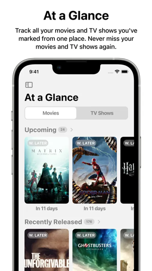 Track all your movies and TV shows you've marked from one place. Never miss your movies and TV shows again.