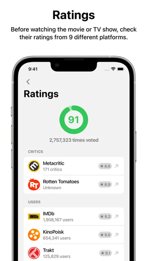 Before watching the movie or TV show, check their ratings from 9 different platforms.