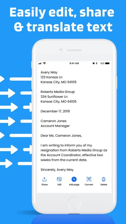 App turns your phone into a portable scanner. You can scan passport, id, documents, photos, receipts, reports and even count objects. The scans will be saved to the device in images or PDF format.