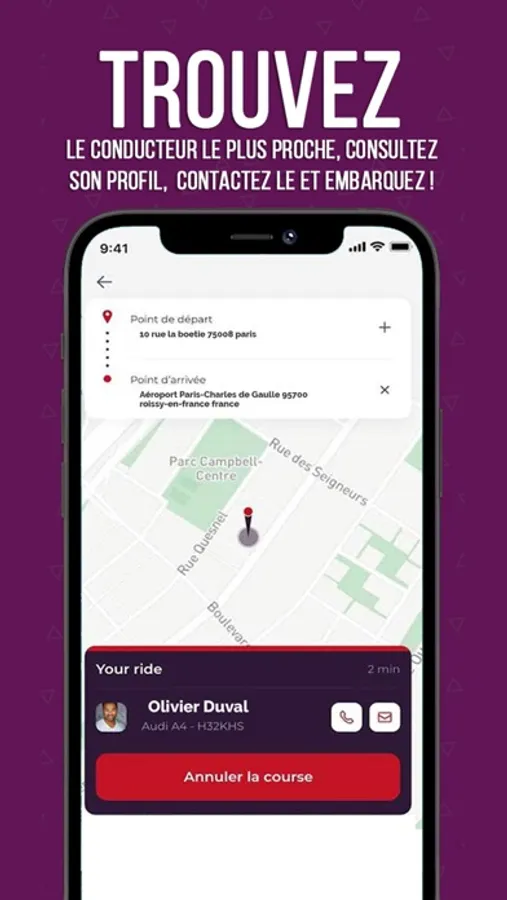 - Pour votre trajet, le conducteur à proximité vient vous chercher dans les meilleurs délais.