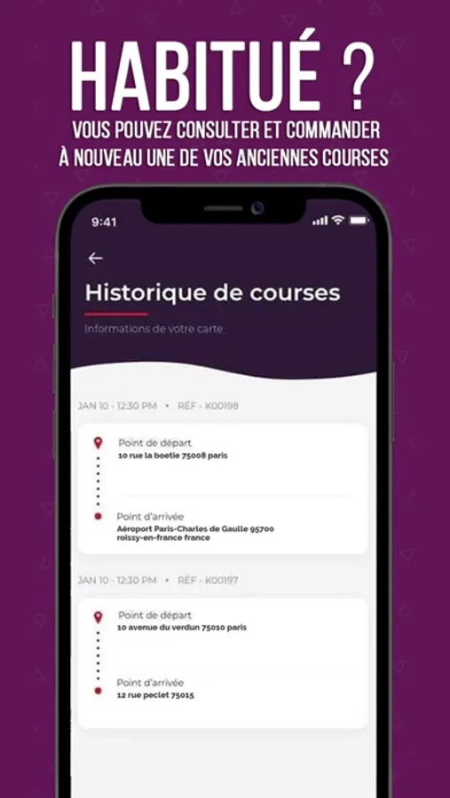 - Visualisez la localisation de votre chauffeur en temps réel;