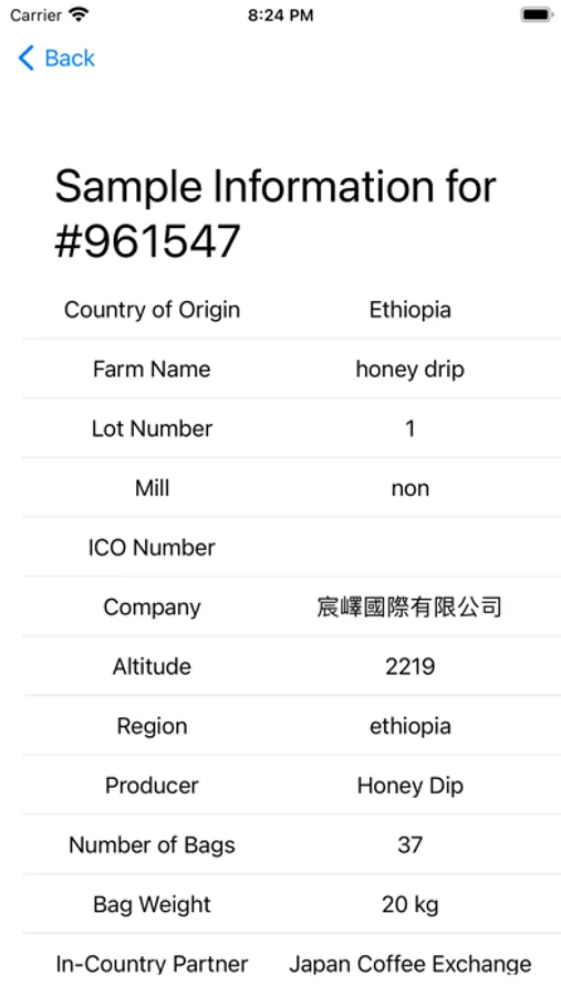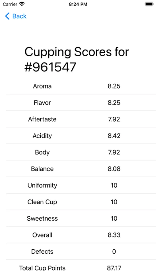 It includes the coffee grading sample number, sample information, cupping scores, and more!