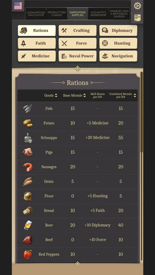 Companion Tool for Anno 1800 is a FREE FAN-MADE companion app for calculating consumption, and looking up optimal production chains and supplies for your expeditions, and more!