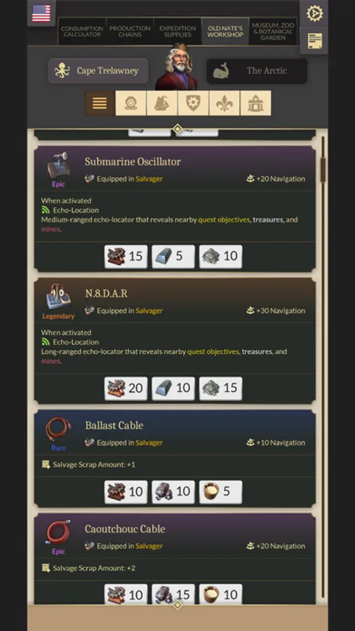 – Quickly look up Old Nate's Workshop items and keep track of the required goods for transmutation!