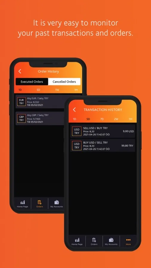 • By using the “Give Order” feature, without having to constantly monitor the exchange rates, even when the application is closed, you can make your transactions at any price you want.