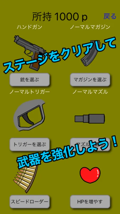 ステージクリアで報酬が手に入り、ポイントで武器やライフを強化!