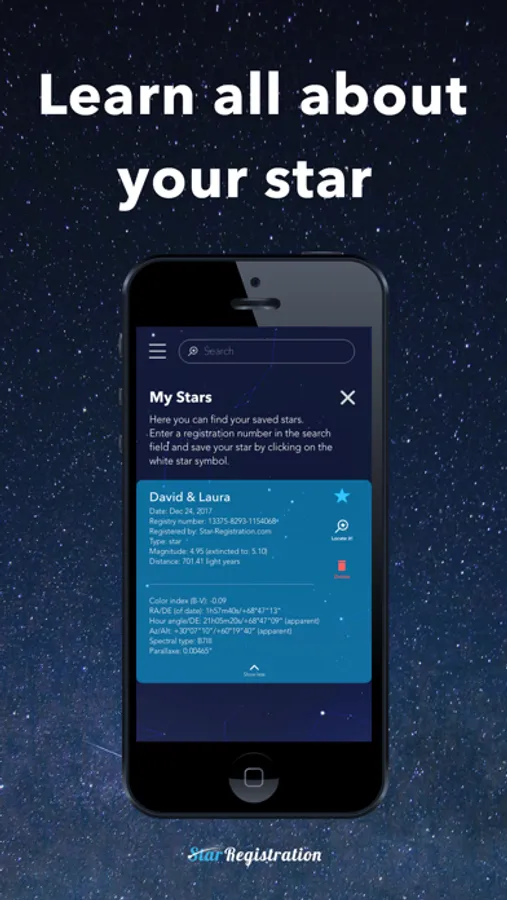 - Ability to find your named Star from Star-Register.com