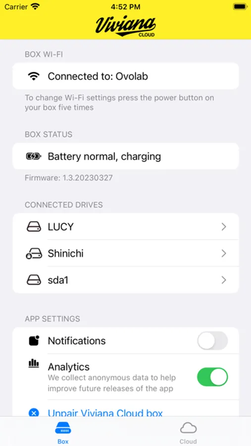 The Viviana Cloud device pairs with the Viviana Cloud app so that you can manage your recordings, listen to the recorded tracks, check metadata, share recordings and create sound reports directly on your smartphone.