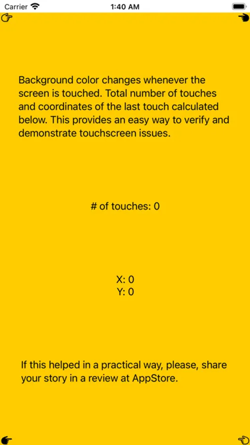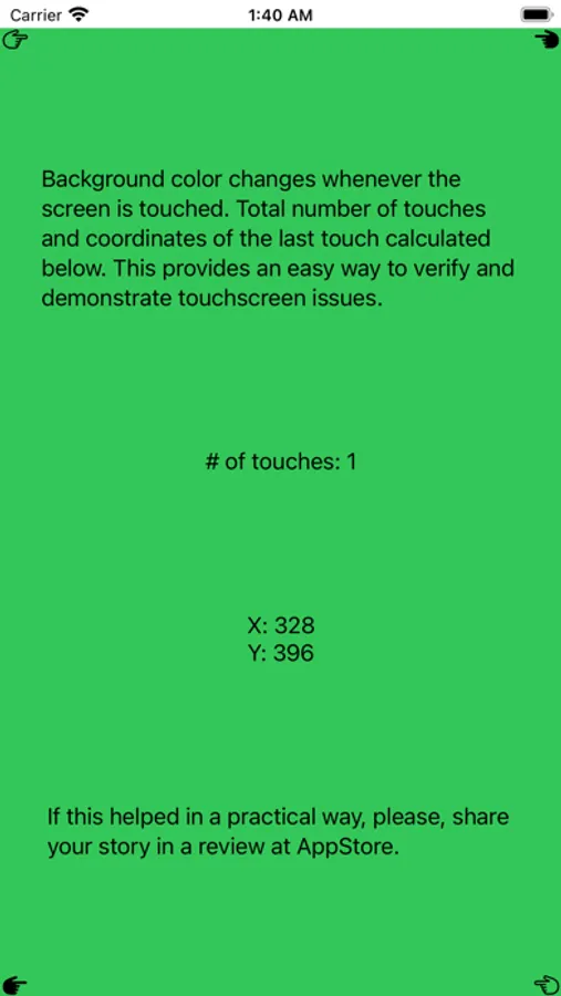 Total number of touches and the coordinates of the last touch are shown on screen.