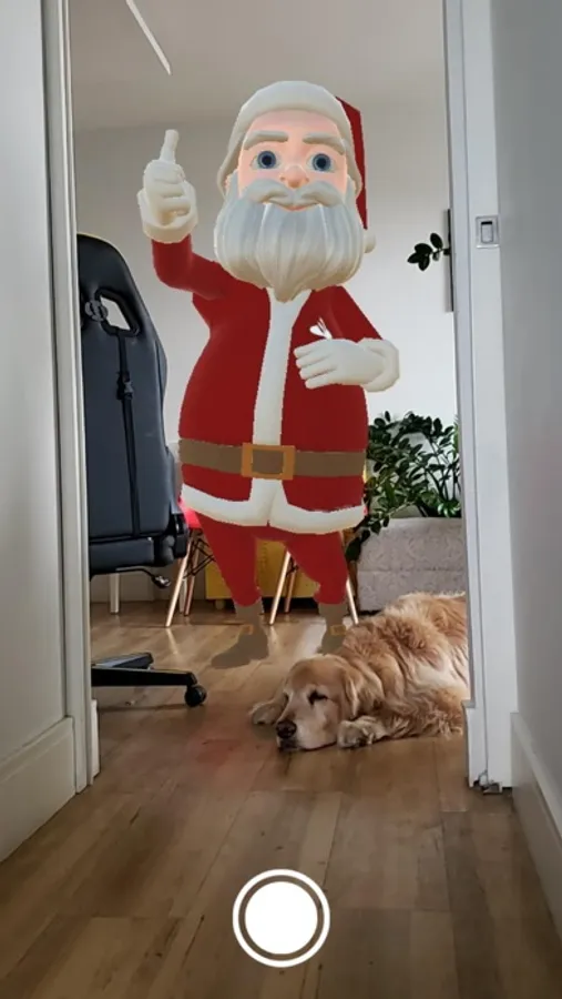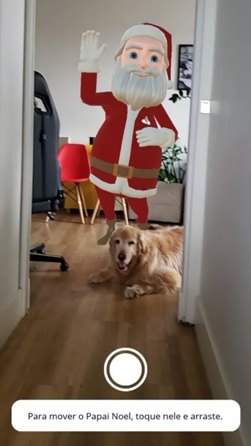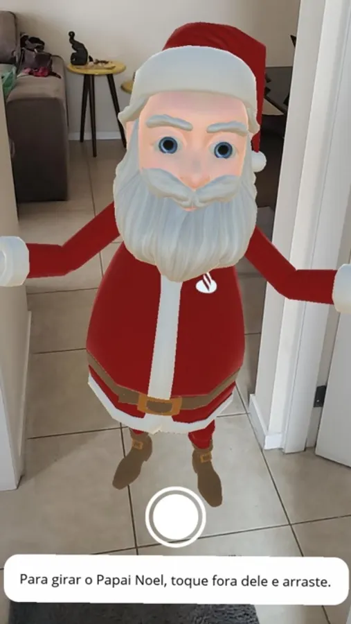 Basta abrir o app, habilitar a câmera, procurar um logotipo do Santander, e pronto! O Papai Noel aparece dentro do seu ambiente.